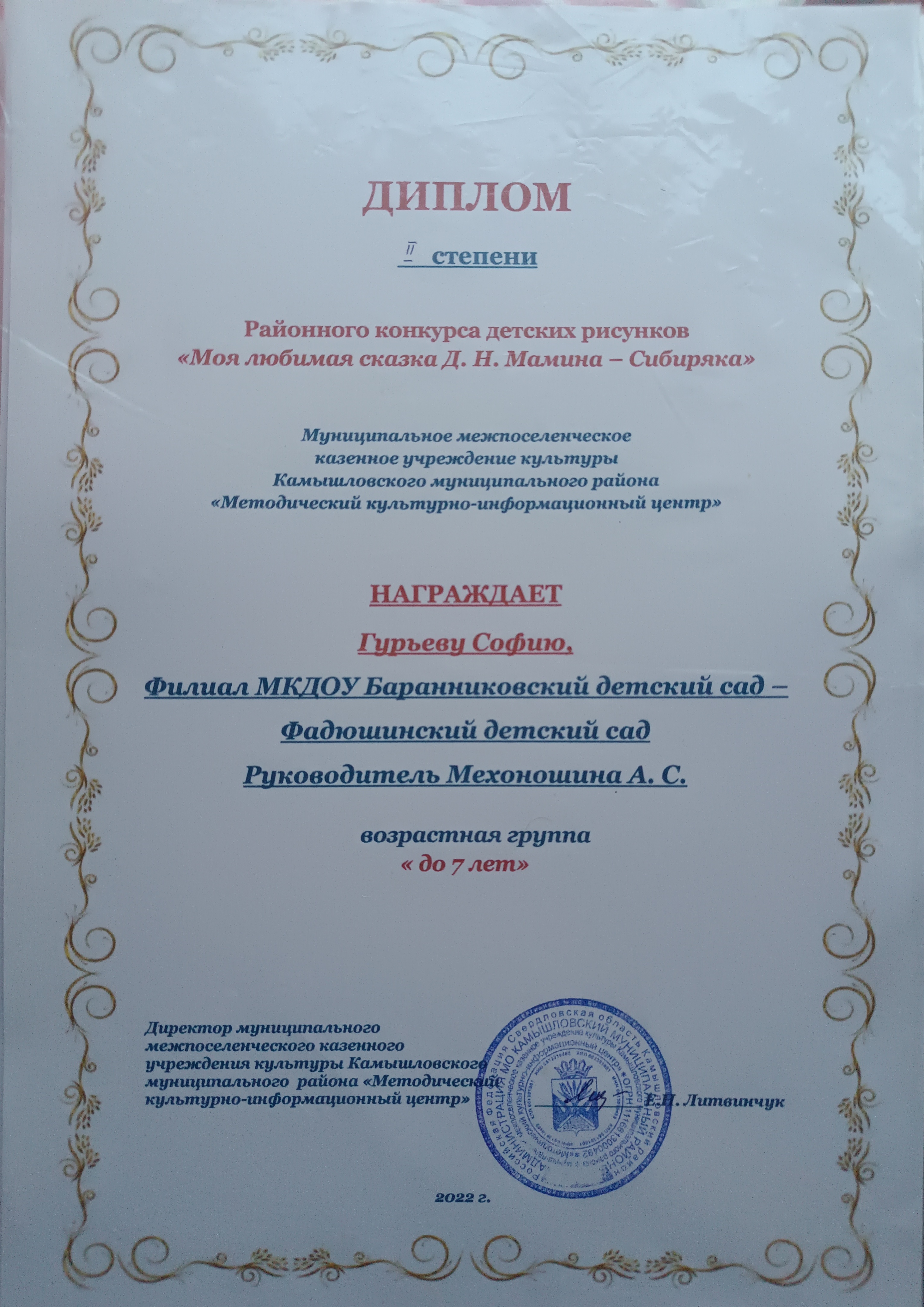 Конкурс детских рисунков " Моя любимая сказка Д Н. Мамина- Сибиряка"