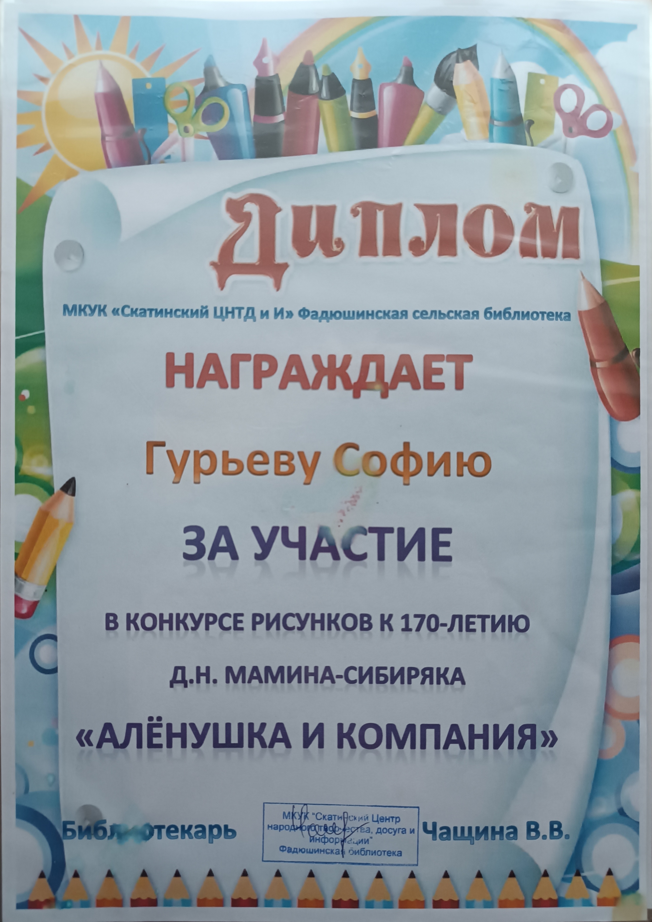 Конкурс рисунков к 170-летию Д,Н. Мамина- Сибиряка